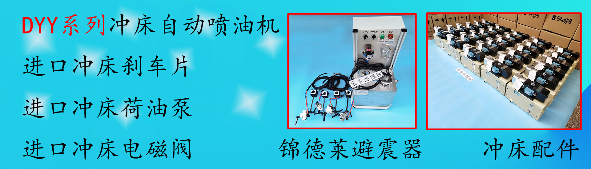 公司主要從事減震器研發(fā)、銷售、工程安裝。經營主要產品有JEDLA氣壓式避震器、錦德萊氣壓式防震腳、液壓裁斷機減震墊、油壓沖床減震器、三坐標防震墊、三次元減震器、測量儀器隔震墊、樓上沖床減震墊、紡織機減震腳、繡花機避震器、注塑機減震腳墊、機械設備防振墊、吸塑機減震墊、三坐標減震器、沖壓自動涂油機、沖床自動噴油機、沖壓自動噴油裝置等工業(yè)機械防震產品。產品熱銷國內市場。